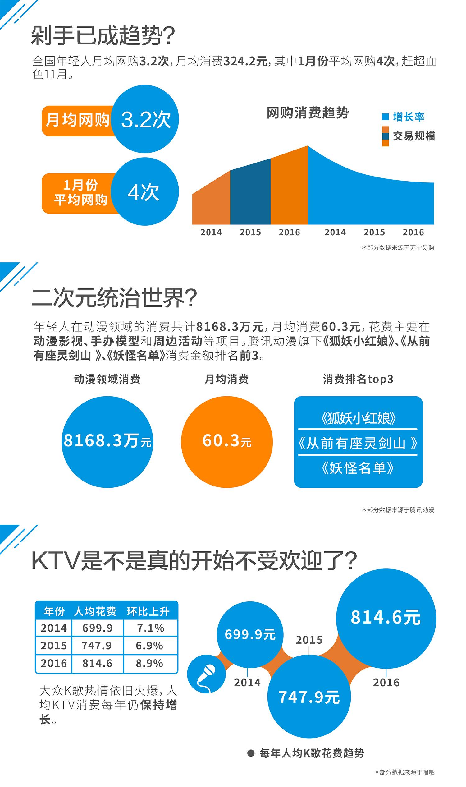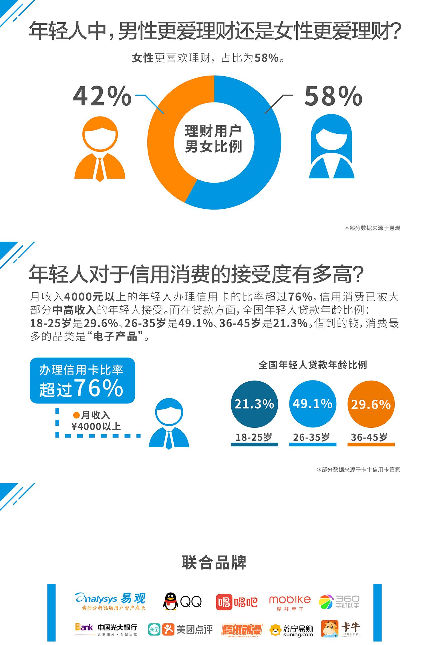 ★ 信息图内容来自易观联合记账理财应用随手记,以及光大银行、手机QQ、美团点评、苏宁易购、360手机助手、摩拜单车、腾讯动漫、唱吧、卡牛信用卡管家等知名品牌联合发布的《2017年轻人消费趋势数据分析》。