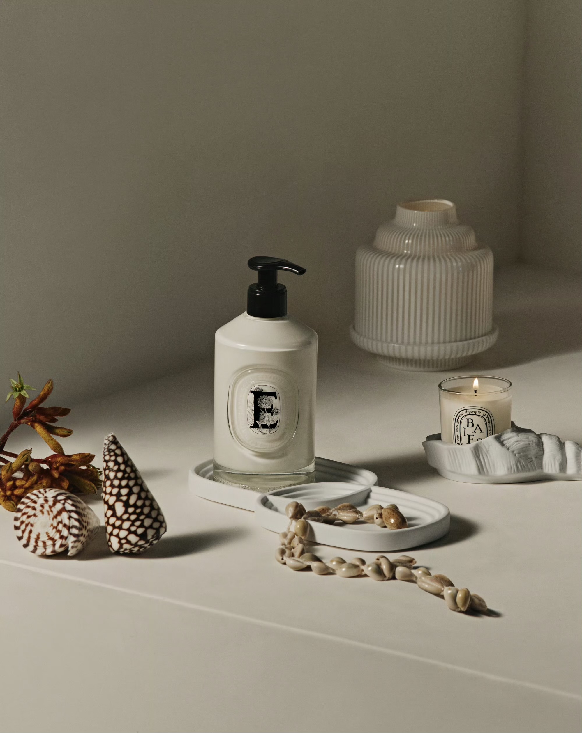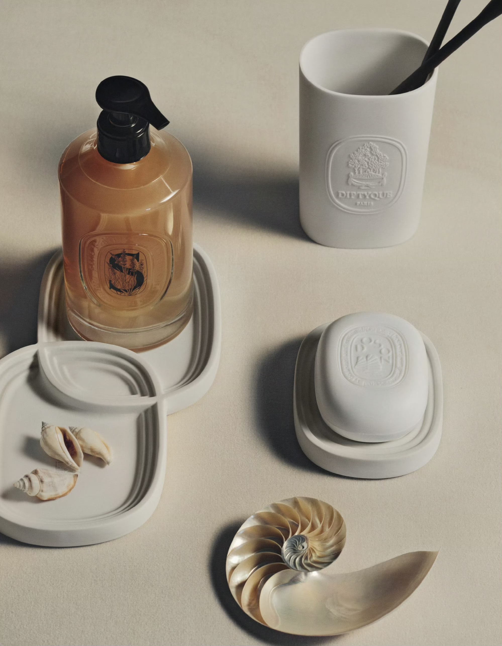 Diptyque沐浴新境艺术家居系列以静穆的白色,致敬法式艺术生活。将日常点滴焕发盎然诗意,享受沐浴的美妙时光,在贝壳的点缀之中放松身心。