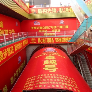 “此次贯通的人~西区间(从人民公园站至西大街站)盾构机整体长126米,重1200余吨,刀盘直径8.63米。”成都轨道集团下属建设公司项目管理一中心副主任姚天宇介绍,“17号线二期列车采用国内地铁最大的8A编组,列车最高运行速度为140km/h。为满足设计时速要求,17号线二期全线盾构区间均采用超过8米的大直径盾构机掘进,是成都采用大直径盾构横穿主城区的地铁线路。”