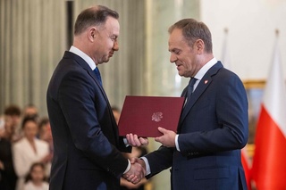 新近上台的图斯克与总统杜达代表了波兰的两股政治力量。自2023年12月正式上台以来,亲欧派的图斯克就与杜达所在的保守派进行了一场权斗,已经上演了解雇国家情报机构负责人、更换国家媒体领导层、闯进总统府抓走前内政部长等宫斗大戏。