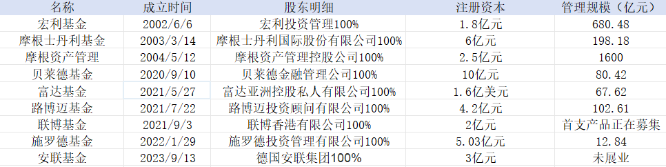 随着联博基金在上海开业,我国外资独资公募已增至9家,合计管理公募资金规模约为2500亿元。
