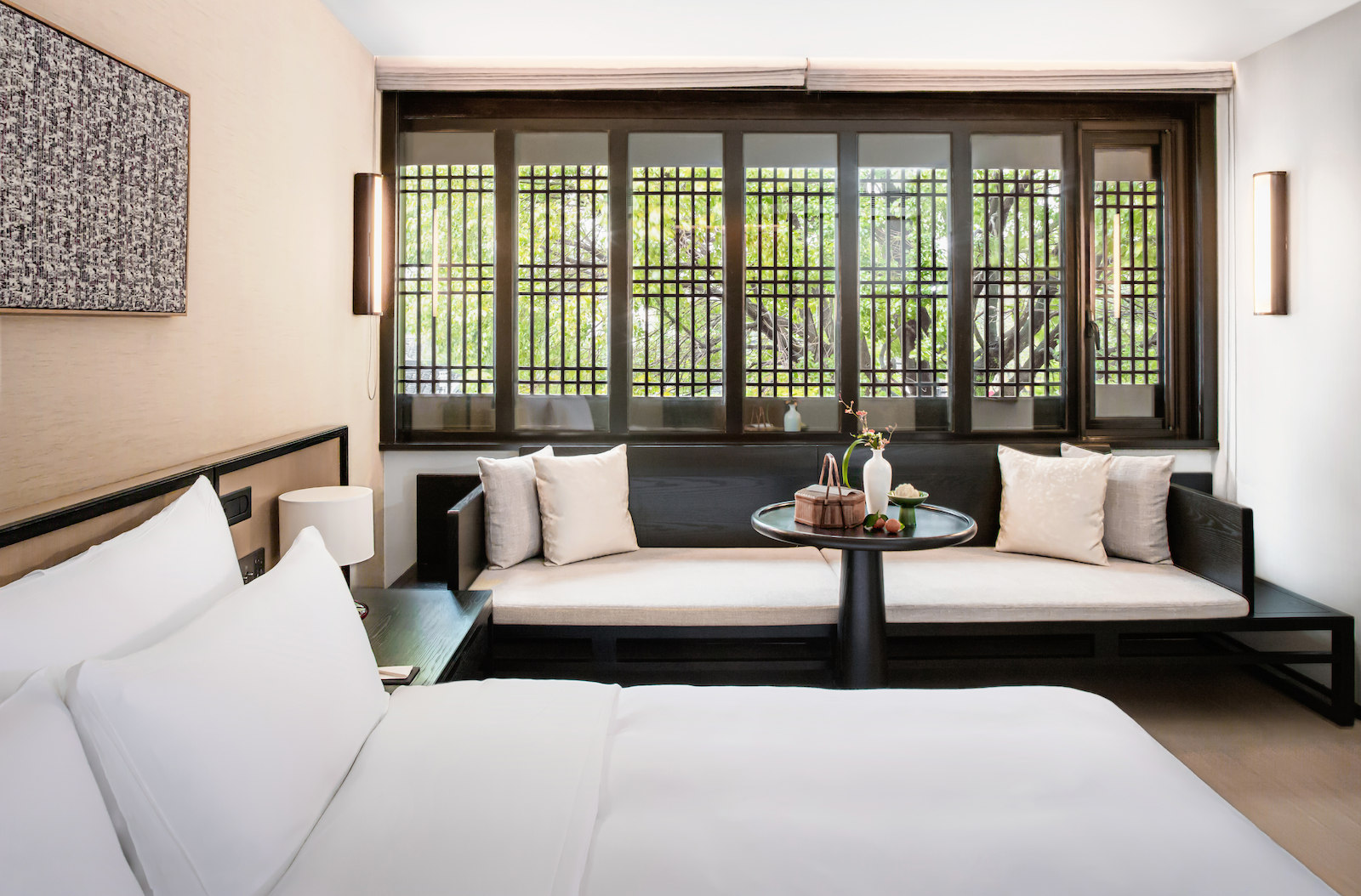 27间客房均为颐和3.0版本客房,房间以传统苏绣技艺创作的装饰刺绣艺术作品点缀,并提供现代高品质旅居体验,呈现古色古香的江南大宅传统风貌又不失健康舒适的居住感受。客房以“六个零”为全新标准,诠释清代生活美学第一人李渔提倡的“贵自然、重机趣”的工艺美学主张。