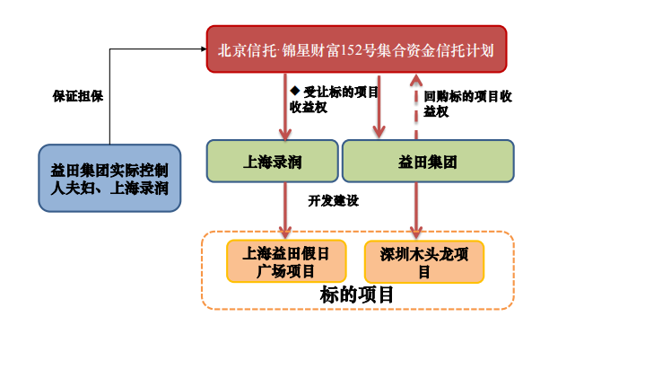 据界面新闻了解,北京信托锦星152号成立于2021年,期限为2+1年,产品规模不超过38亿。信托资金用于受让益田集团持有的深圳木头龙城市更新项目(以下简称“深圳项目”)、上海录润置业有限公司(以下简称“上海录润”)持有的上海益田假日广场项目(以下简称“上海项目”)资产收益权(深圳项目、上海项目合称“标的项目”),信托资金最终用于标的项目的日常经营支出、归还标的项目因开发建设而产生的前期借款等。
