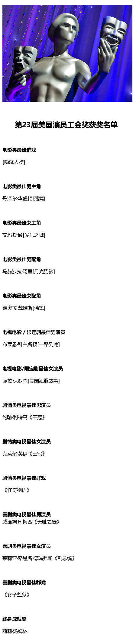 1. 电影最佳男主角:丹泽尔·华盛顿 《藩篱》