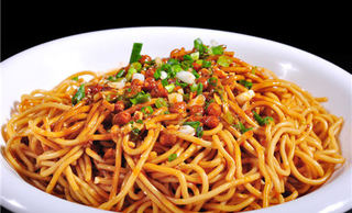 热干面的面是一种碱水面,热水汆烫之后加佐料干拌食用,因为是热食干拌,所以称热干面。街上吃的热干面在下锅以前已经是处理过的半成品,面条提前煮至半熟,沥干后拌油抹均匀避免面条粘连,因此在街边看到的热干面是一推松散的面条堆在一起,师傅扯出一把(通常是二两一份)放入大漏勺在滚水中汆汤数下捞出沥水盛出。桌上摆着大小碗盆,各色调料一一加入,再撒上葱花香或香菜,就端给客人了。这样的做法首先源于做生意的需要,同时也增强了面的口感。我在网上买过一根根的干面,煮熟后一次沥干干拌,少了筋道,口感稍差。本地超市里卖的,大多也是处理过的半成品。