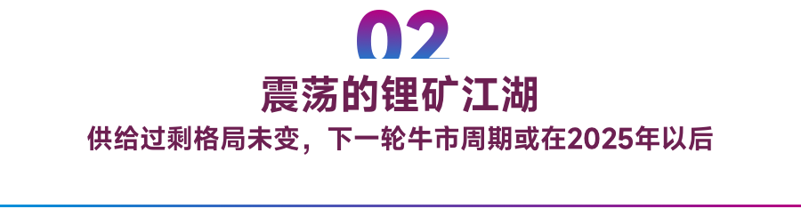 中长期来看,我们预计本轮磨底之路会较为漫长,高成本项目逐步出清仍需时间,随着需求的恢复,特别是未来如果储能领域快速增长拉动锂需求的释放,使供需平衡达到新的拐点,锂价才有可能企稳上涨,我们预计锂价下一轮上行周期有可能在2025年以后出现。