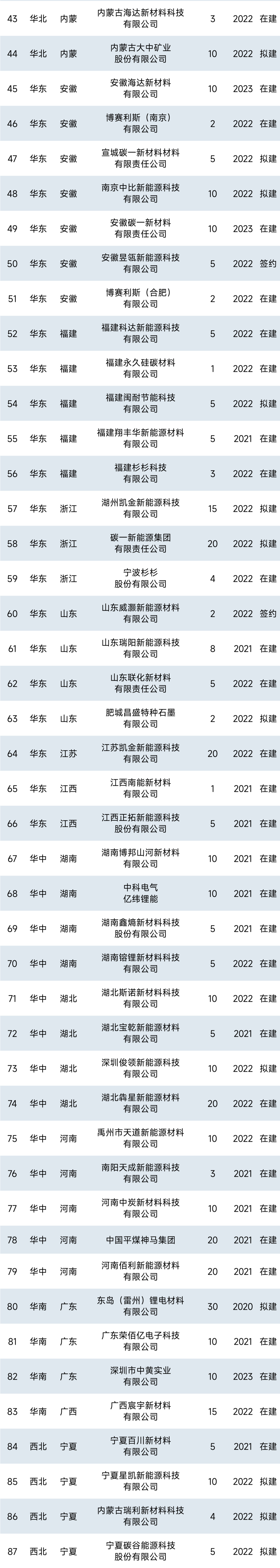 但是,在凶猛的扩张潮下,负极材料赛道却已出现产能过剩现象,且呈现加速趋势。