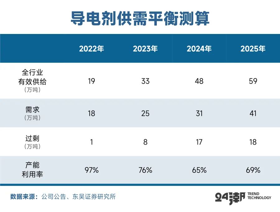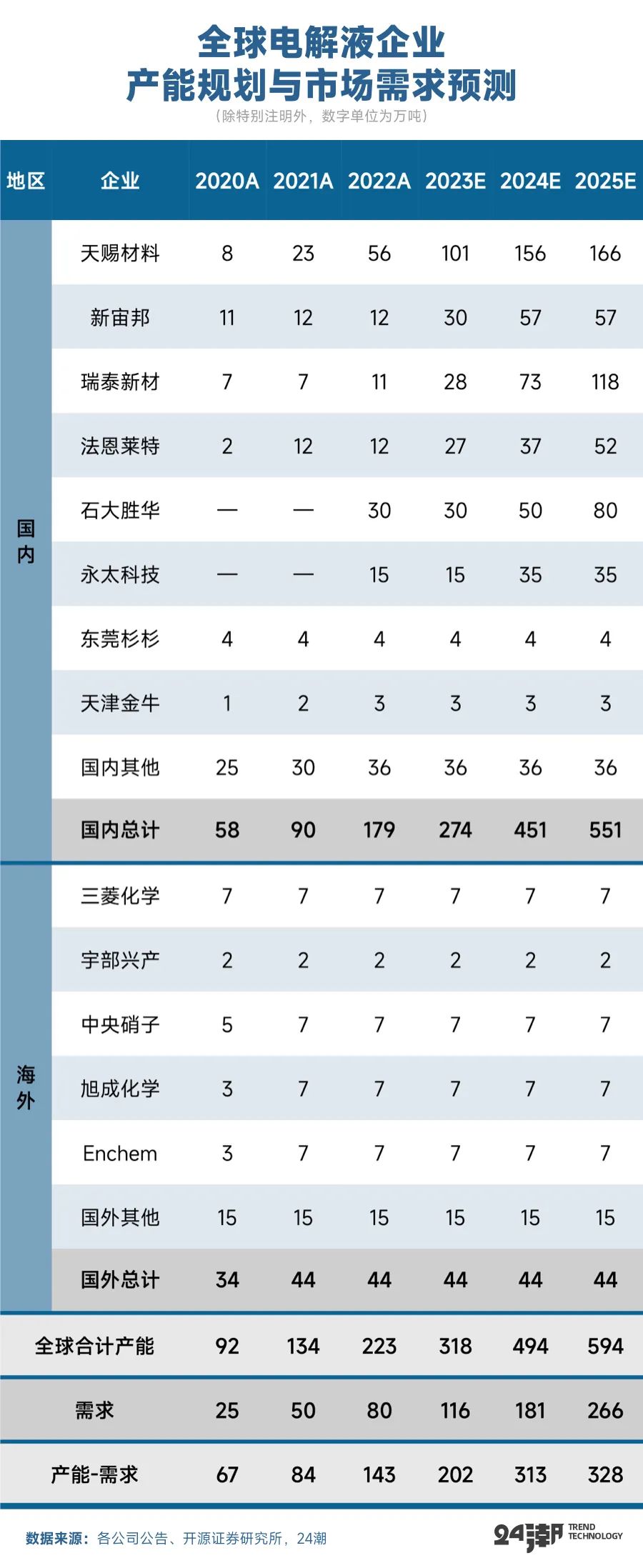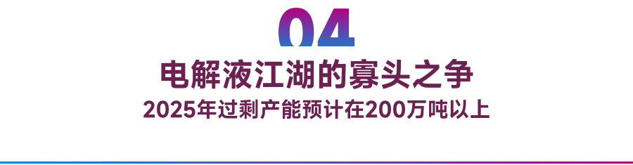 但回归企业层面,未来产业竞争加剧已是必然。比如据开源证券统计,预计到2025年全球电解液产能约为594万吨,远超上述需求预测。