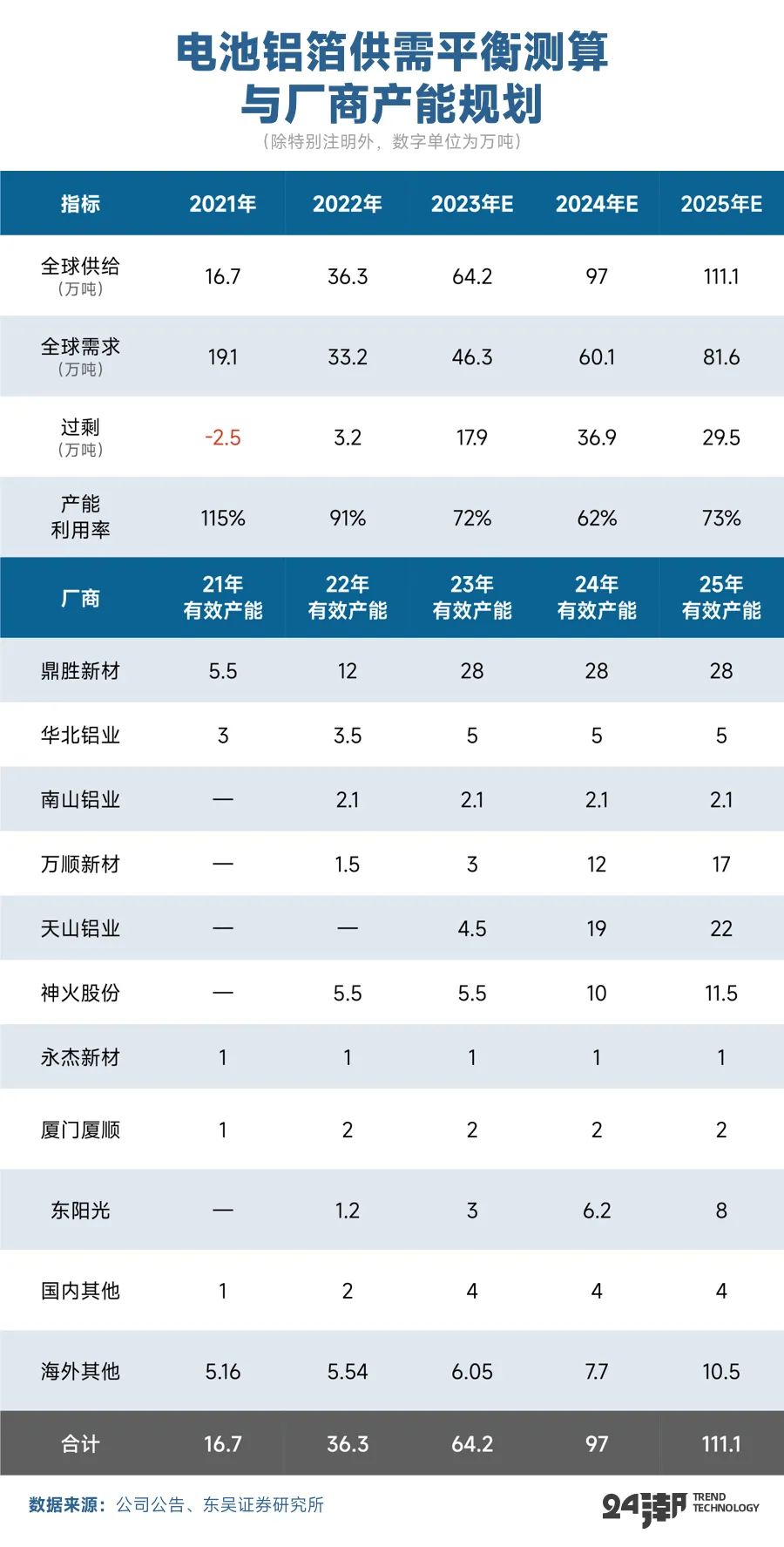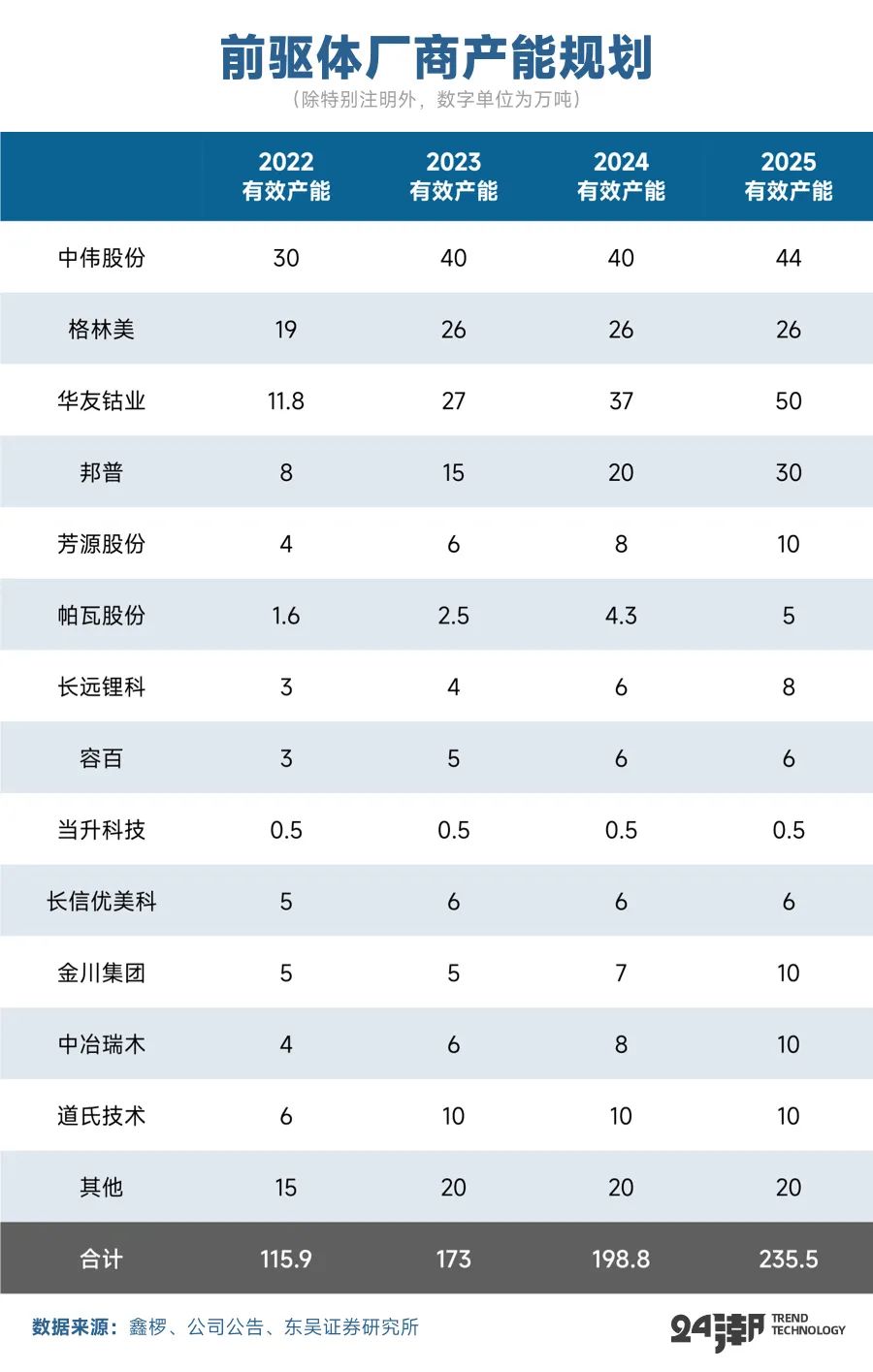 但是据东吴证券预测,2024年、2025年锂电池全行业有效供给预计分别为1883GWh、2362GWh,过剩产能分别达646GWh、722GWh。而这近乎已经是较为乐观的市场预测,未来产业竞争的惨烈程度可能超过很多人的想象。