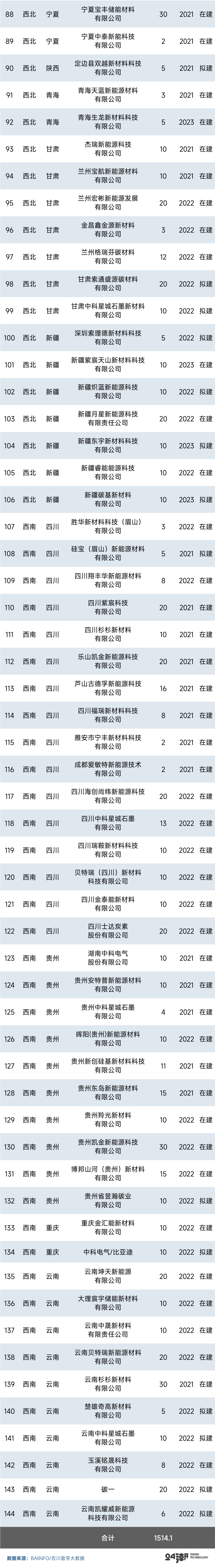 另据百川盈孚大数据统计,目前140多家企业负极材料产能规划合计约为1514万吨,远超上述券商未来三年全球市场需求预测,未来产业形势不容乐观。