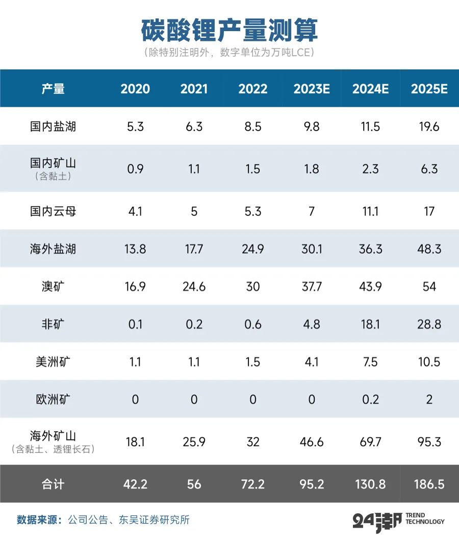综合安泰科、东吴证券等机构预测,2024年锂电产业需求增长趋势放缓已是大概率事件,锂资源过剩量约为23-25万吨LCE。