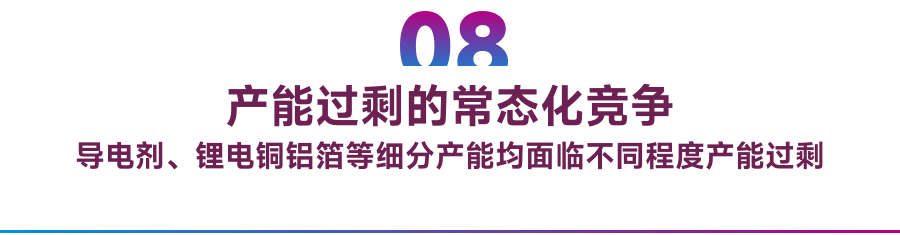 如下表所示,锂电铜铝箔、导电剂等细分赛道几乎都面临产能过剩的压力与风险,只是竞争环境与风险略有差异,我们不再一一赘述,相信读者朋友自有评判。