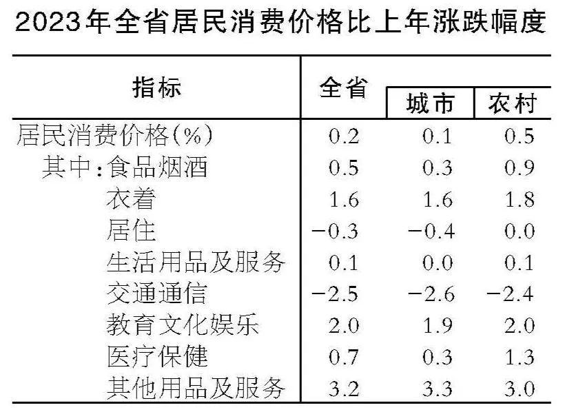 全年居民消费价格比上年上涨0.2%,其中食品烟酒价格上涨0.5%。工业生产者出厂价格下降3.4%。工业生产者购进价格下降4.9%。农产品生产价格下降3.3%。