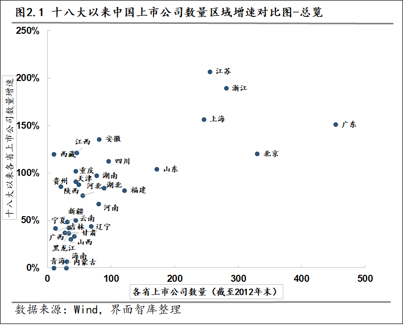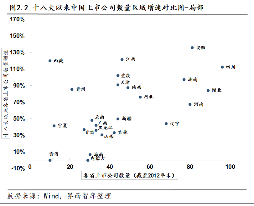 各省市强者恒强的态势较为明显。十八大以来,各省市上市公司2012年末数量较高的省市期间均保持了高增速、高增量的“双高”增长。
