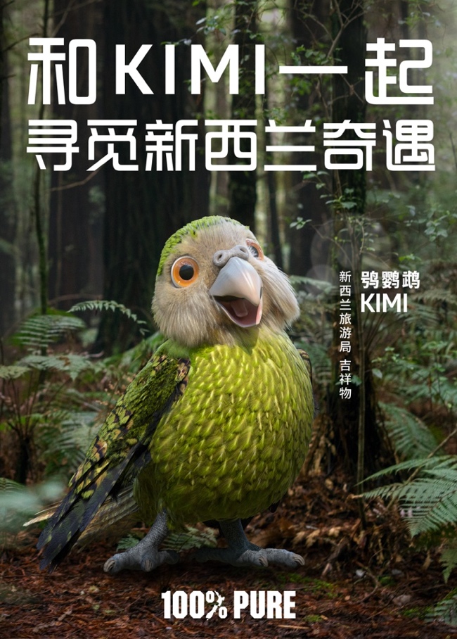 近日,新西兰旅游局在中国市场正式推出吉祥物——鸮鹦鹉Kimi,希望以可爱的珍稀动物化身为中国游客的“最佳向导”,加强新西兰与中国游客的情感联结。Kimi作为一个友好并乐于冒险的角色,将鼓励中国游客以好奇心和探索精神体验新西兰这片美丽的土地。