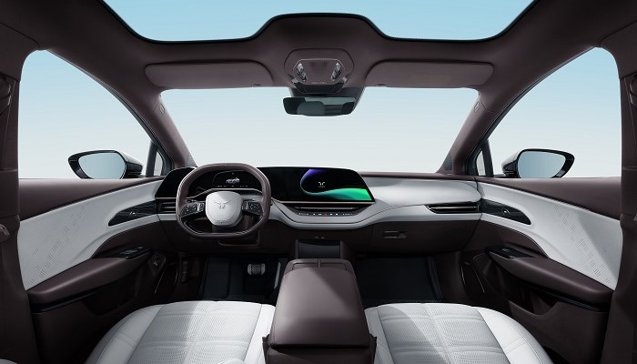 新车内饰提供包括双色组合的多种配色选项,中控台采用连体式的液晶仪表盘和中控屏,芯片则为主流的高通8155,响应性方面表现出色。