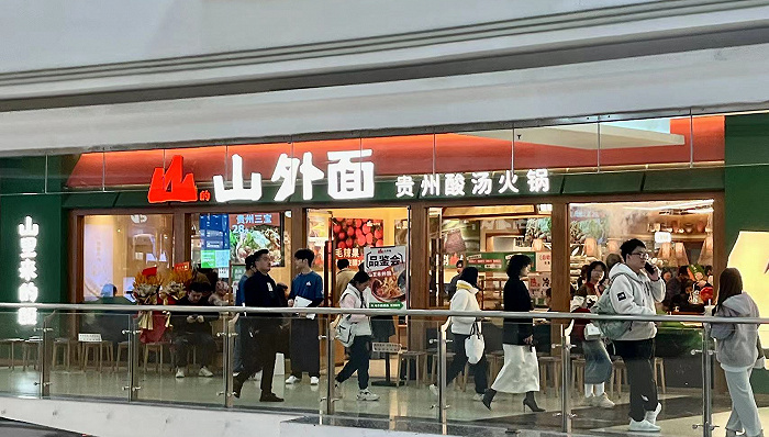 而在多品牌矩阵之中,九毛九也逐渐开放了太二和山的山外面贵州酸汤火锅的加盟业务,以加速渗透空白市场。