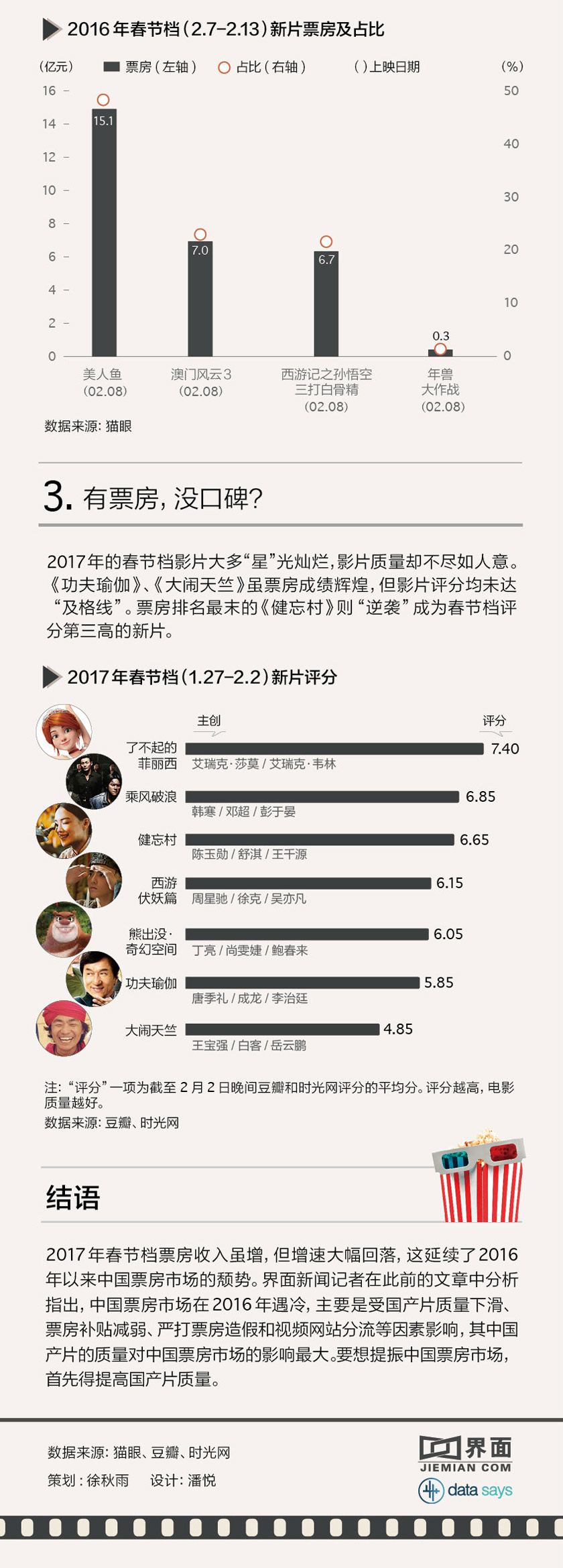 【图解】2017年春节档票房破33亿 周星驰再成“票房灵药”