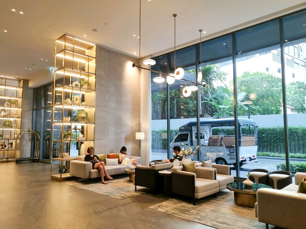 走进大厅办理入住,敞亮的大堂空间分有不同的功能区,沙发陈列区供客人交流与等待,"The Pantry "的商店供应各种食品和日常必需品,右侧的餐厅全天提供泰式或西式餐饮服务,每日经过大堂总能感受到酒店服务人员的热情问候。