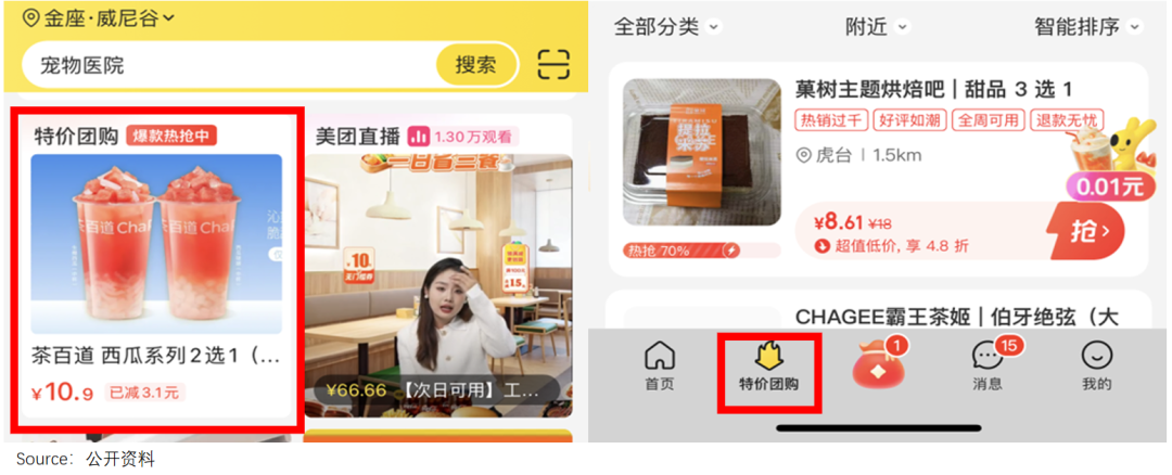 过去一年,通过特价团购和直播等新业务,美团找到了新用户。具体来看,此前按月滚动出现在APP首页的“特价团购”,焊死在首页的显眼位置。