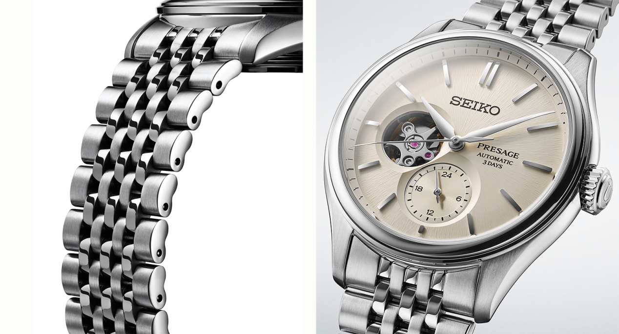 此次发表的Presage表款,其中有三款腕表采用经典的三针配置及日期窗,而另两款腕表除了配备24小时刻度显示、9点钟位置的镂空装置还可清楚窥见擒纵机构。所有新作均采用最近推出的Seiko 6R机芯,72小时动力储存可确保周五晚上取下手表后、周一早上配戴时依旧运作,无需重新调整时间。带有日期功能的叁针腕表使用6R55机芯,而镂空腕表则使用6R5J机芯。此外,表款均采用透视表背可清楚一览机芯的金色摆轮。