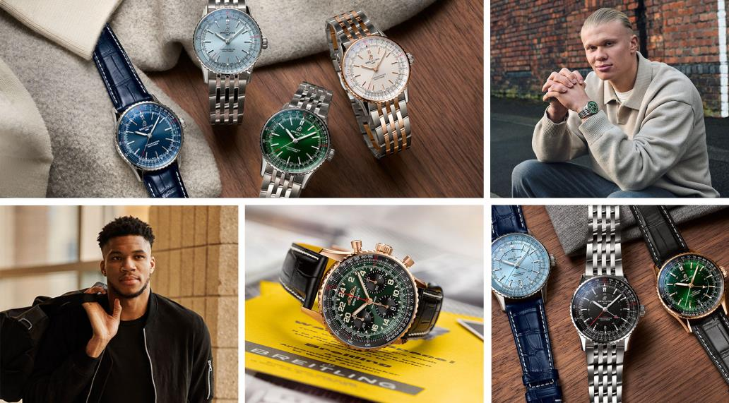 百年灵推出航空航天主题精品:航空计时GMT腕表、自动机械腕表41和自动上弦宇航员腕表限量版。体坛翘楚埃尔林·哈兰德和扬尼斯·阿德托昆博携手领衔航空计时广告大片,共同见证百年灵迎来140周年。