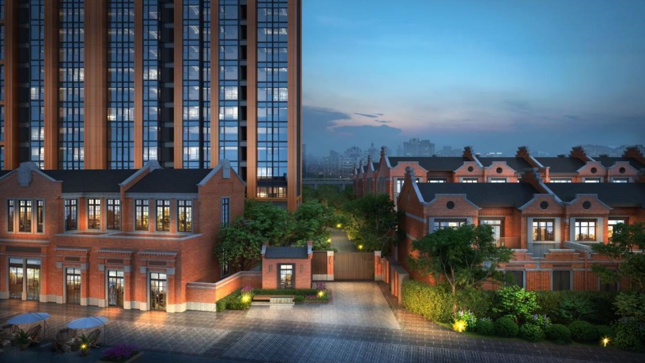在博懋广场,龙盛将推出3幢39-43层超高层住宅“湾上”,预计2024年中入市。在这里,龙盛还打造了约1.3万平方米低密风貌建筑。考虑到城市更新地块的属性,项目不仅包含风貌保护建筑,为追求项目的整体协调性,龙盛还在设计上沿用上海经典石库门建筑的元素,选用低饱和度的砖红色和深灰色作为主基调色,彰显海派经典高端人居。
