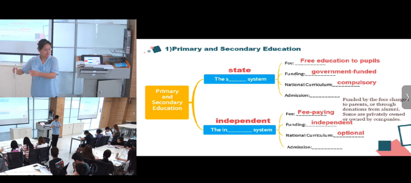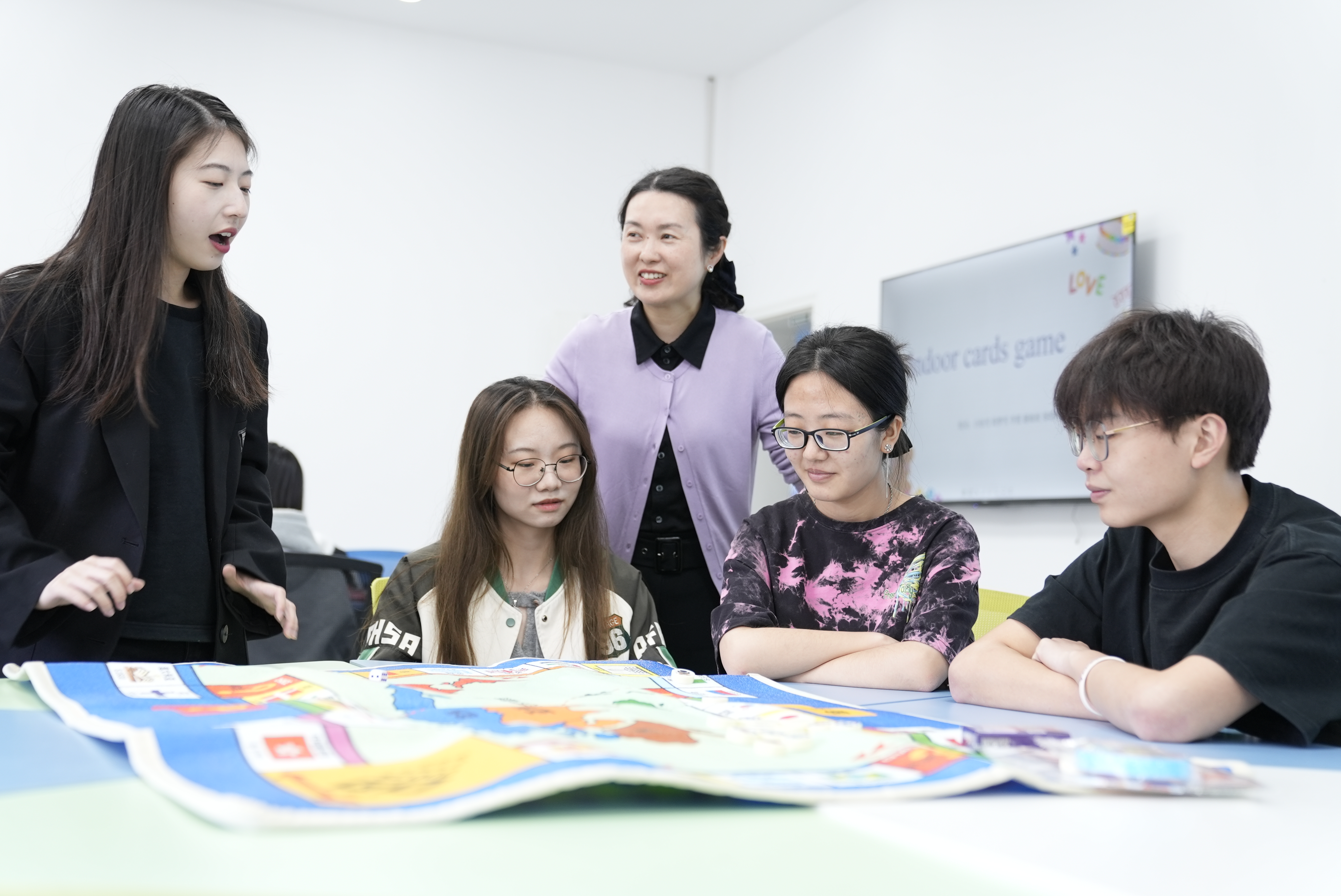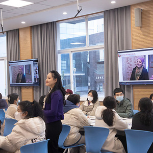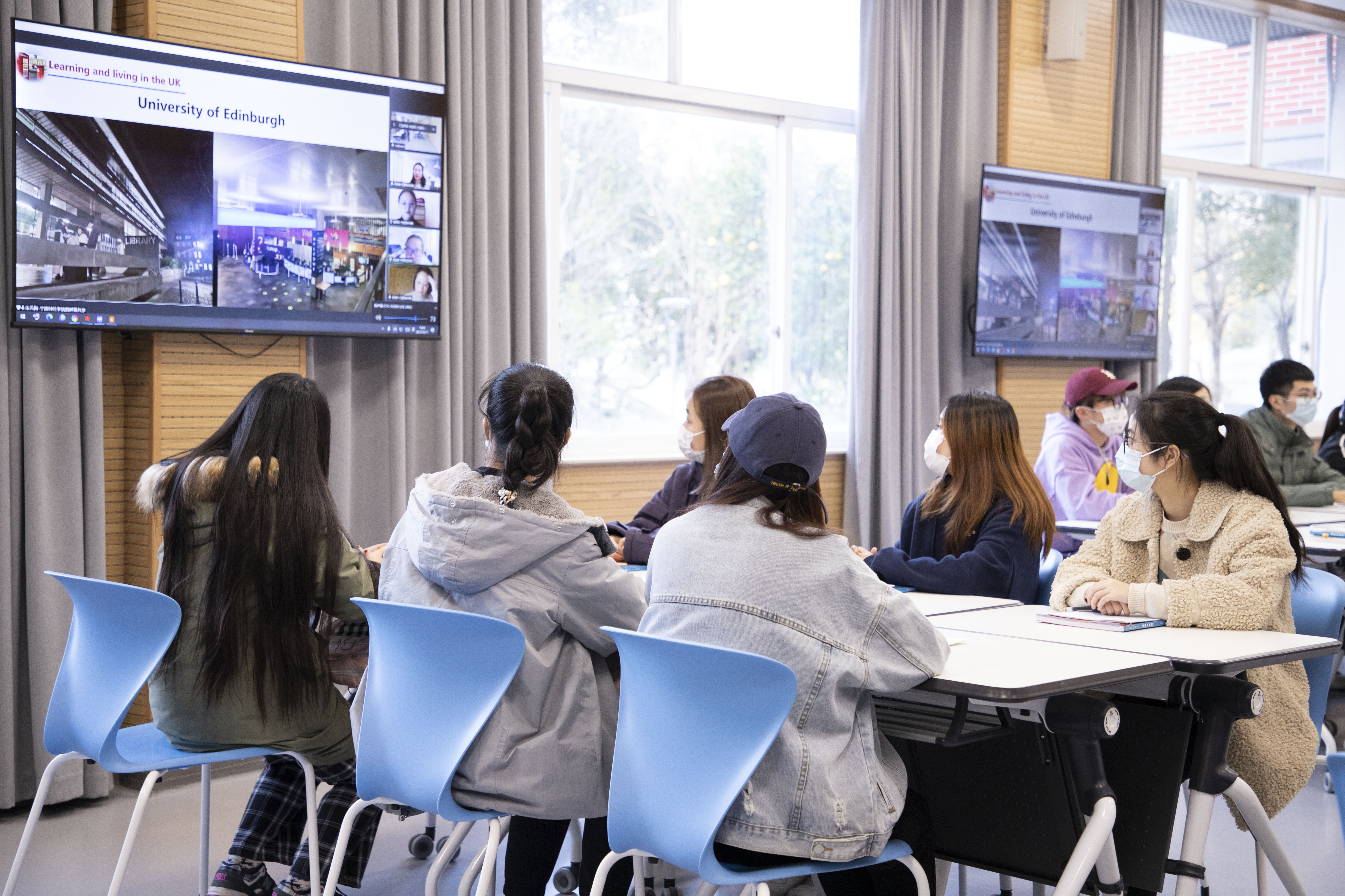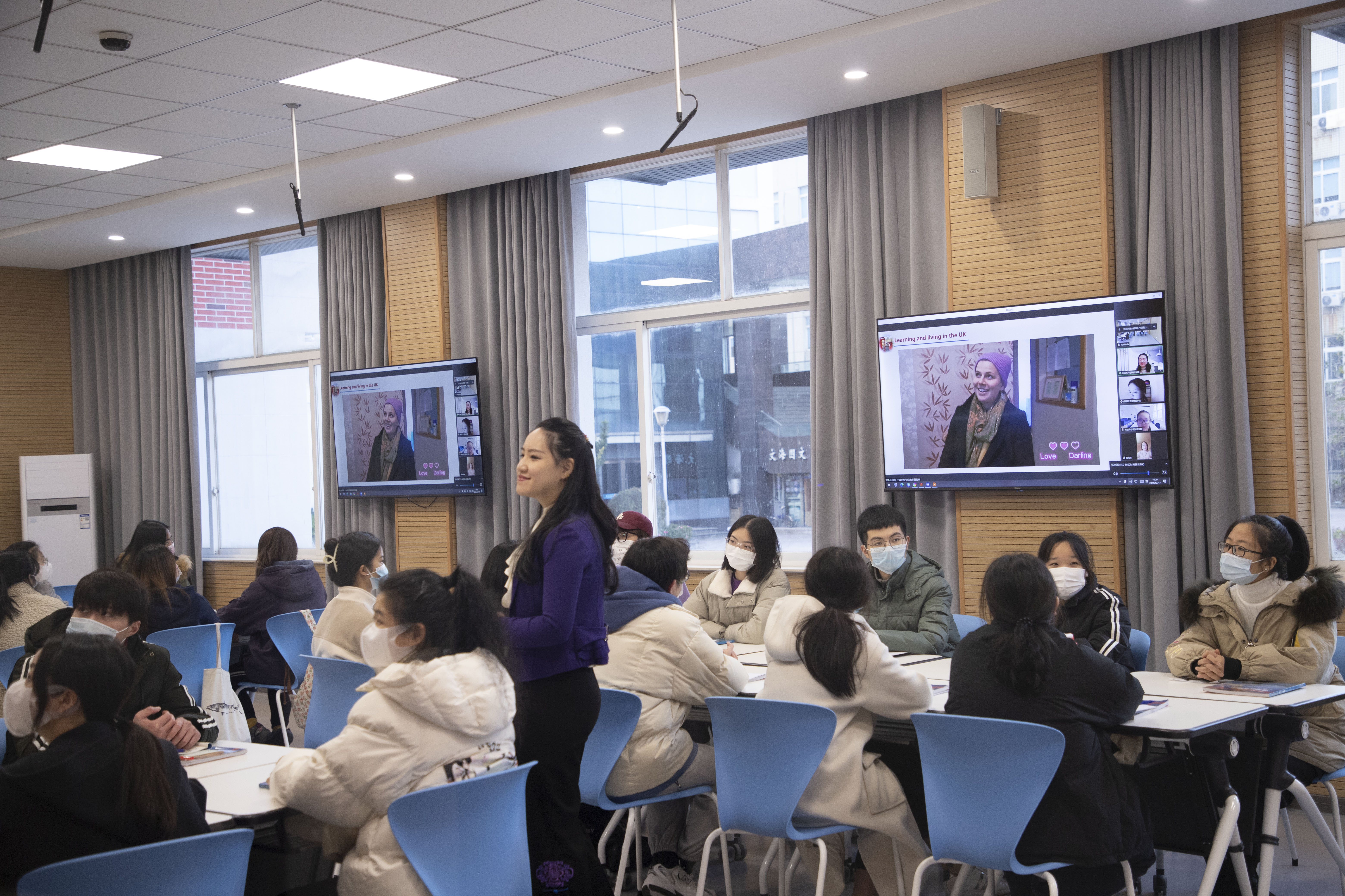 在“Learning and Living in the UK”的课堂上,除线下授课老师外,还有2名在英国访学深造的老师,3名已经从学校毕业在英国读研究生的学生,通过数智化教学手段,让位于英国从南到北五所高校的师生,形成独特的英国学习地图,给课堂上的学生带来了现身式的英国文化输出。
