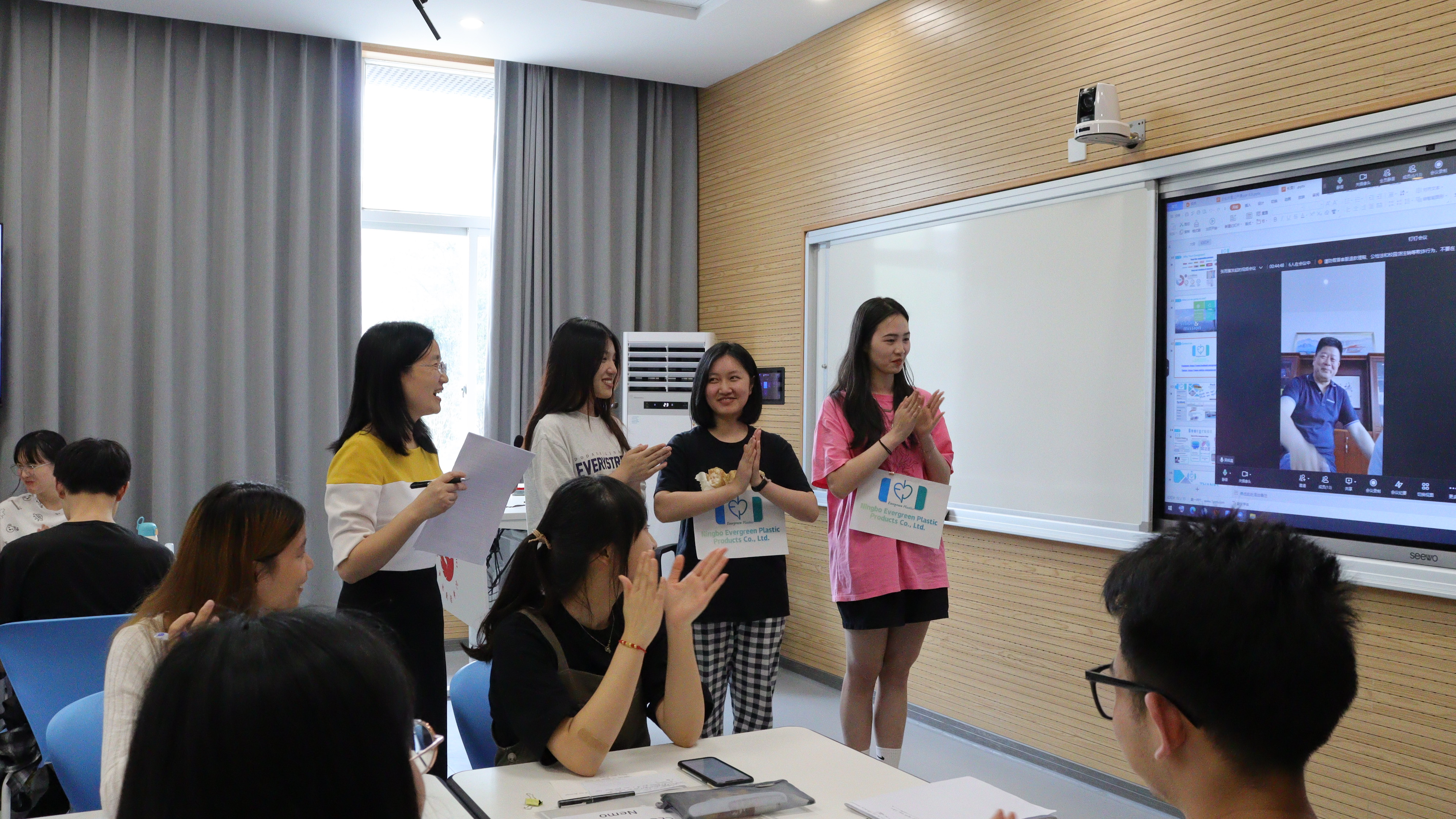 在宁财院,推门而入一节英语课师生互动的氛围感拉满。情景再现、小组讨论、PPT展示、三分钟英文演讲的小环节穿插其中,一波接一波,课堂节奏活泼明快,师生互动热烈积极,一来一往间师生一体推动教学相长。