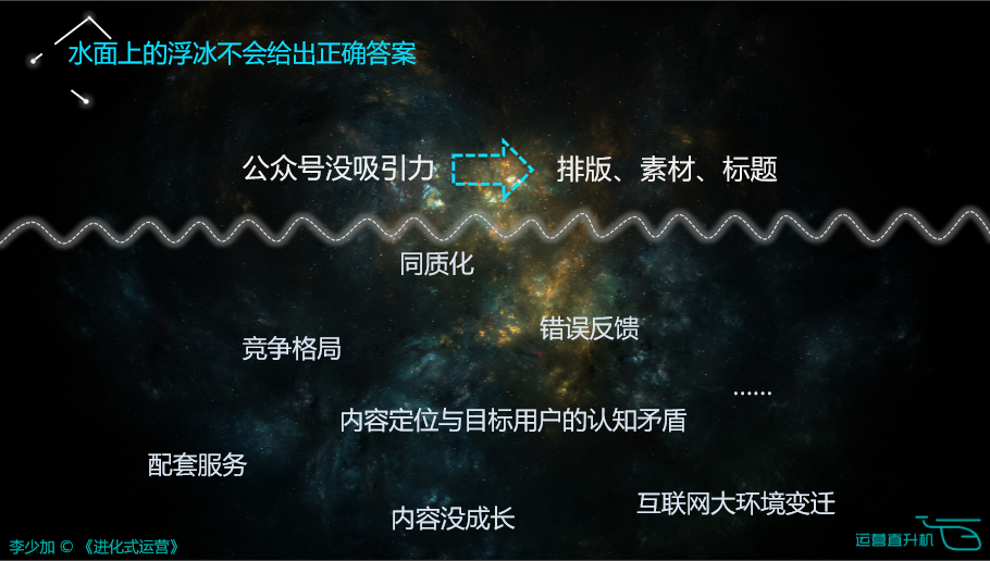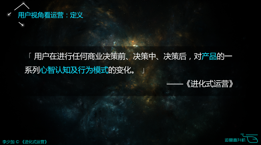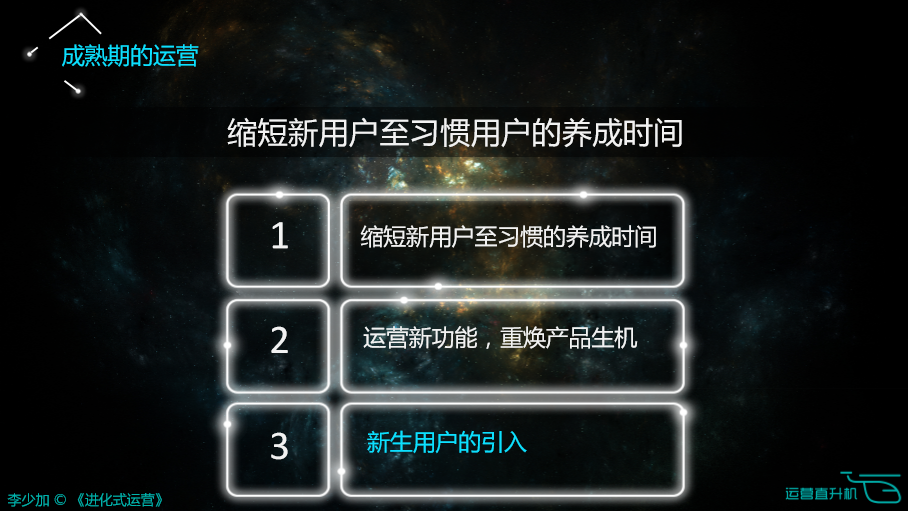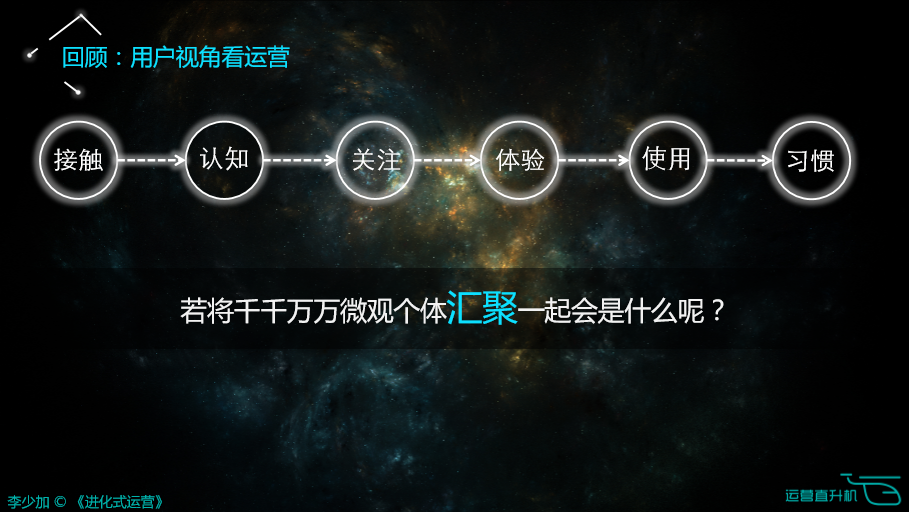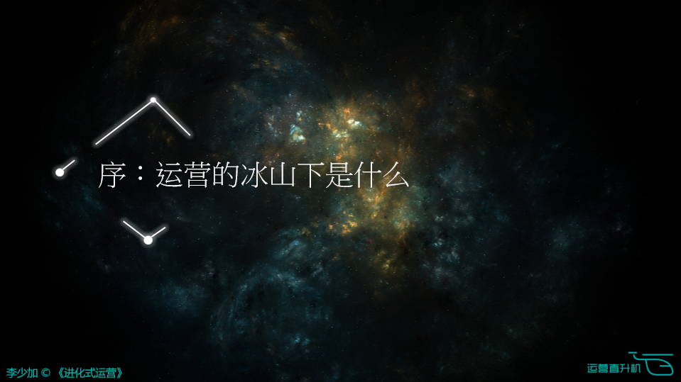 温馨提示:本文由《进化式运营》作者李少加于2016NOMS全国运营峰会(北京)的分享,由运营直升机整理发布。本文PPT已于运营直升机公众号菜单栏“运营秘籍”中更新