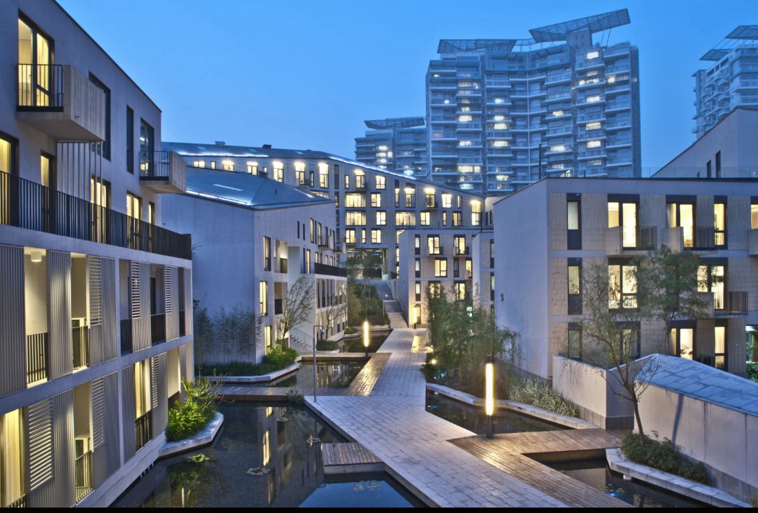 公寓由10座错落有致的楼宇组成,整体风格概念取自江南水乡风情,园林社区、南山相伴、绿水葱茏,将江南人文和当代生活美学融合得恰到好处。