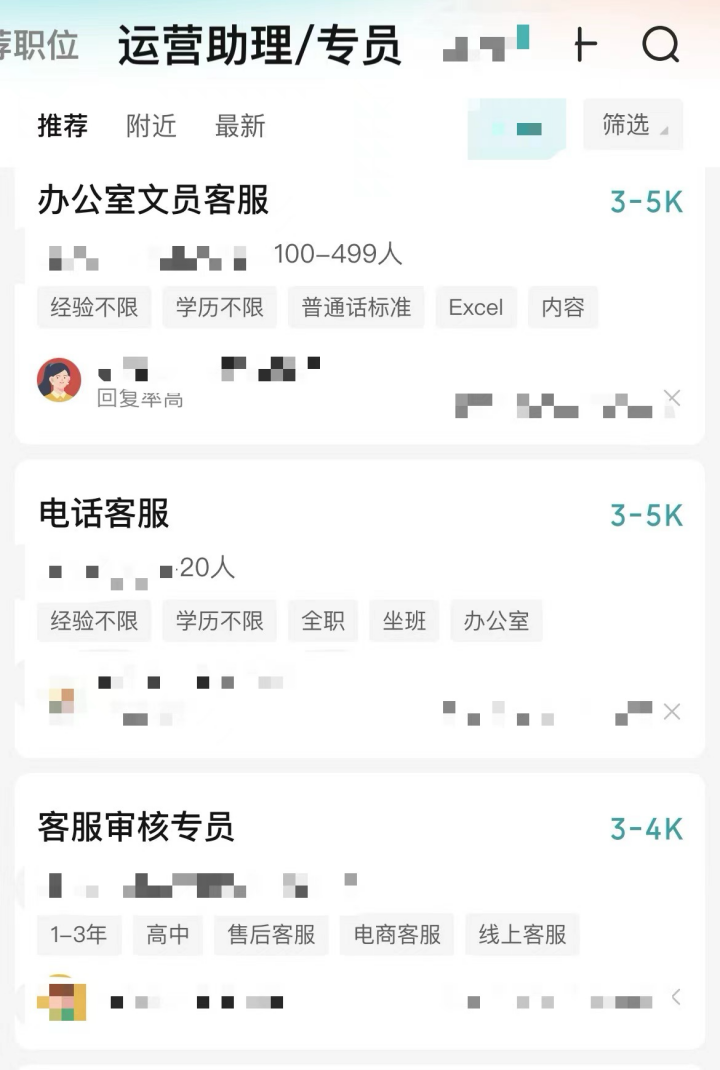 他划回最上面那几条运营岗位,点开不光工资大缩水,详细介绍里实际招的都是底薪2500的销售和主播。