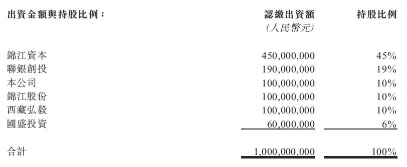 据此,原股东协议项下符合约定条件的投资人的投资份额由锦江资本负责出资并持有相应的WeHotel股权。锦江酒店、锦江股份、联银创投、西藏弘毅及国盛投资的出资金额与持股比例保持不变。据锦江酒店公告,经调整后,锦江资本认缴出资额人民币4.5亿元,持股比例达45%;联银创投出资人民币1.9亿元,持股比例达19%;锦江酒店、锦江股份及西藏弘毅均分别出资人民币1亿元,持股比例各达10%;国盛投资出资人民币0.6亿元,持股比例达6%。