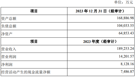 财务数据显示,截至2023年12月31日,天津同融资产总额697.31亿元,净资产7.83亿元;2023年度实现营业收入44.97亿元,净利润7970.66万元。