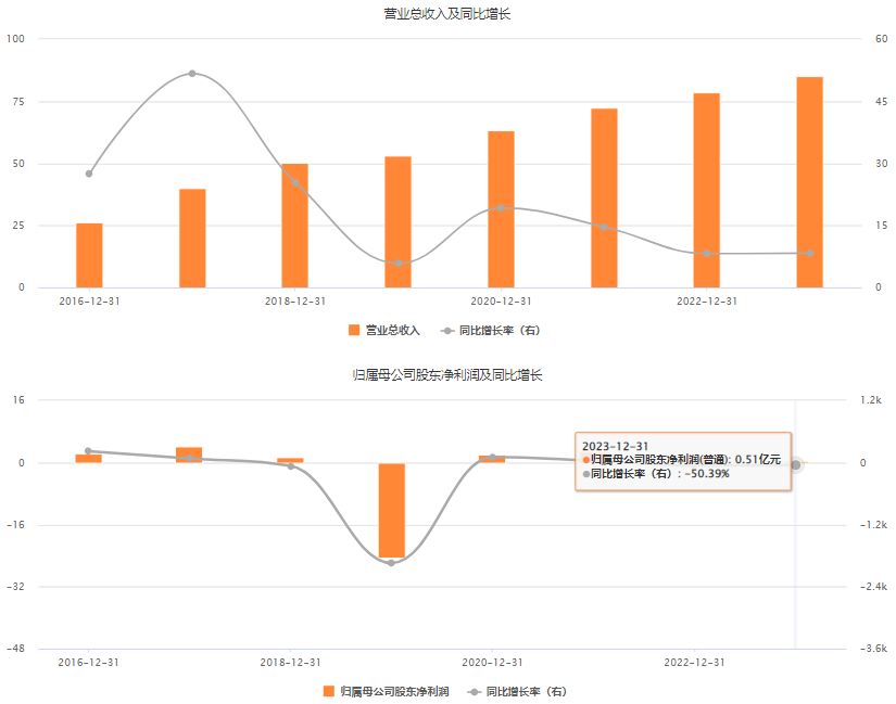 近年来,海联金汇业绩虽有所好转,但仍处于低谷徘徊。2020年至2023年,该公司分别实现归母净利润为2.13亿元、2.78亿元、1.03亿元、5094.22万元,同比变动幅度分别是108.68%、30.23%、-63%、-50.39%。