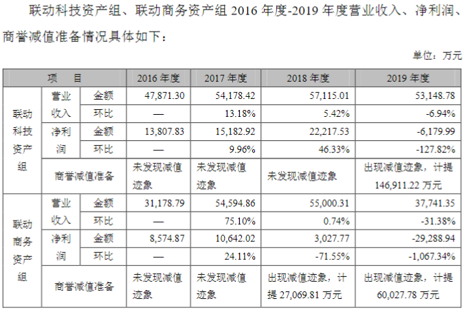 据其解释,2018年联动优势全资子公司联动商务根据外部形势对子战略进行了调整,以合规运营为前提、以快速发展补充公司服务供给侧场景为目的,进一步优化第三方支付产业及客户结构,将第三方支付业务的部分非主要方向业务全面关停,同时聚焦拓展“交通出行、B2B产业互联网、金融业、线下实体经济场景”等领域。前述战略调整给联动商务带来一定成本、业务影响,而新布局业务在2018年尚未实现明显收益,导致联动商务2018年度整体业绩同比下滑,进而导致联动优势未能完成2018年业绩承诺。