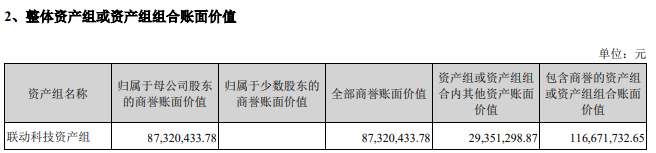 此后,海联金汇继续对联动科技资产组等进行减值,分别于2021年、2022年及2023年涉及商誉减值损失金额为3472.69万元、2092.88万元、2367.17万元。截至目前,联动科技资产组全部商誉账面价值仍有8732.04万元,资产组或资产组组合内其他资产账面价值2935.13万元。
