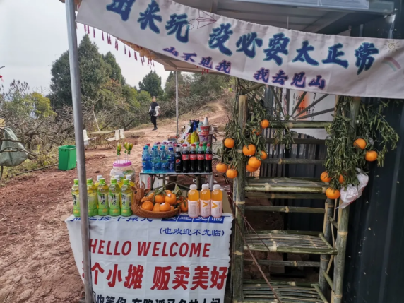 距离山泉镇大佛村小尖山顶直线距离不过百米的夏大哥一家怎么也没有想到,山顶这条村民走了多年、只是用于种地的小路近两年突然火了。春秋季节,经此徒步前往石经寺的游客络绎不绝。在地里干活常常被“借水”的夏大哥在徒友们的建议下,与家人在山顶开起了一间无人值守的小卖部,既为过往游客提供方便,也为家里挣得一份收入。