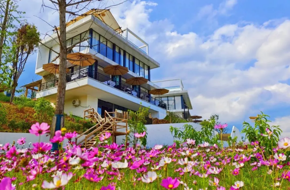 如果说“野生徒步”是龙泉山里的小众玩法,那依托绿水青山成势、生态本底厚植而不断兴起的民宿产业,则是生态环境价值转化更为直接的体现。从长松村、宝狮村,到花果村、桃源村,再到美满村、红旗村,从南至北,绵延起伏的龙泉山上,200余家风格各异、特色明显的农家乐、精品民宿、文化商贸、休闲运动业态正成为青山里的龙泉驿的“接待窗口”,迎接着一批又一批游客。其中,各类精品民宿达48家,近两年已推动实现龙泉山乡村旅游年均总收入达1.7亿元。