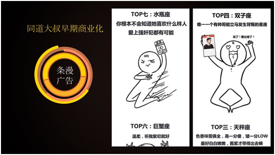 提到内容产品,大家可能看到我们的漫画,当时创作思路第一是内容定位,我们考虑传统星座内容是以专业化的一块来做的,们的产品应该是以星座来做,应该是易于浏览的。在选题上面,做内容选题的过程中是经过全网的查询和调研的,什么话题可以引发粉丝的转发或者喜欢,基于这样的想法我们做了很多调研。调研以后传统的内容输出直接做完了以后在微博发出来,大量粉丝在评论里面给我们做UGC的内容。经过二次的分析和改良然后再发出来,这样完成了早期内容转化。