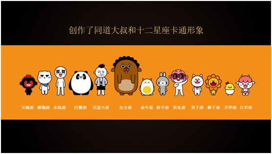 第二就是符号定义。我们让用户和大众人群认识到这个卡通形象或者认识我们的品牌是通过什么方式?我们定义这些卡通形象包括同道大叔这个品牌,我们认为是符号化的定义过程。