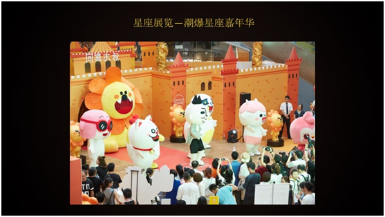 然后推广我们的IP形象,除了传播微博微信内容,还做了星座嘉年华活动。这个活动特别有意思,传统的商场有一个低潮期,我们想未来是不是有可能以这样的话题或者IP内容未来跟商场做结合,能够给商场带来更大的流量,然后产生更多话题。一方面可以传播我们的IP形象,还可以销售我们的衍生品。