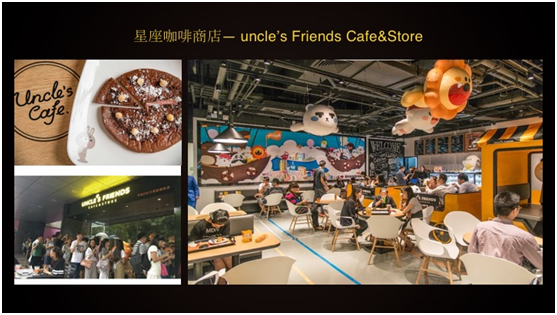 我们在上海做了整个星座咖啡馆。这是2016年在上海正大广场开的第一个星座咖啡馆,以餐饮、零售加上粉丝互动、品牌IP店的形式来做的。我们跟大量商家商场做一个月到两个月快速展览的一些活动。第一我们给商场做引流,包括主题这块的事情。我们可以销售自己的产品,提高我们整个品牌的知名度。我们还做的事情就是星座运动会、博物馆,包括和携程做的旅游。