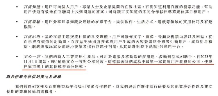 于是,一些迷惑发言在所难免。百度2023年财报,也不乏极限定语:我们成为中国第一家实施用户收费的公司,使我们与市场上的其他模型区分开来。