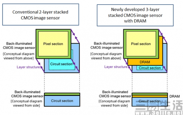 到此为止,在智能手机能够使用的CMOS体积上,索尼已经将画质提升到了结构、体积限制下能够达到的极致,接下来该如何升级呢?索尼给出的答案是用三层堆叠CMOS来提升拍照过程中的处理速度。