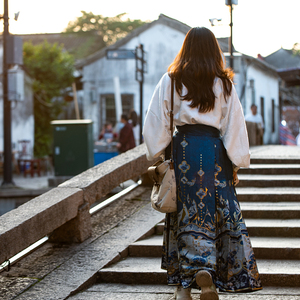 董子琪:我想补充一个角度。按语引用的几篇报道中都讲到,这一次马面裙出圈的客户群不是原来的汉服爱好者,马面裙其实是完全出圈了。马面裙爱好者往往对汉服以及马面裙在不同朝代的制式和纹样等知识缺乏了解,而只是觉得马面裙和成套的汉服不一样,它适用场景非常多元,配T恤配衬衫都可以,很生活化。