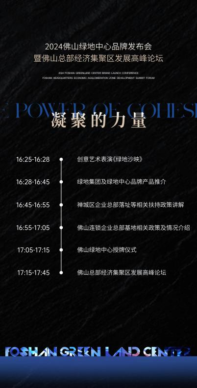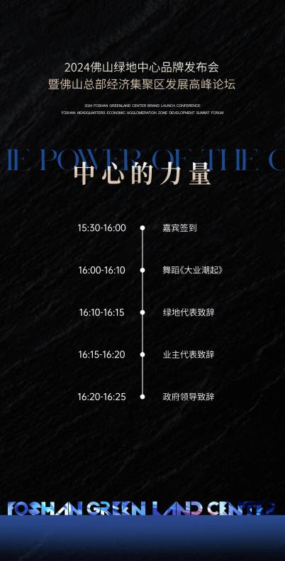 本次品牌发布会及佛山总部经济集聚区发展高峰论坛,是一场属于佛山百强企业商界领袖人士的经济峰会,本次论坛将以“万亿佛山强中心,总部经济集聚区”为核心主题,全方位地解析佛山绿地中心T4栋220米尖端资产总部势能、探讨佛山禅城区企业总部经济集聚区发展蓝图落地、禅城区连锁企业落址相关扶持政策等,届时,共鉴总部商务峯范,共鉴佛山经济发展的魅力。