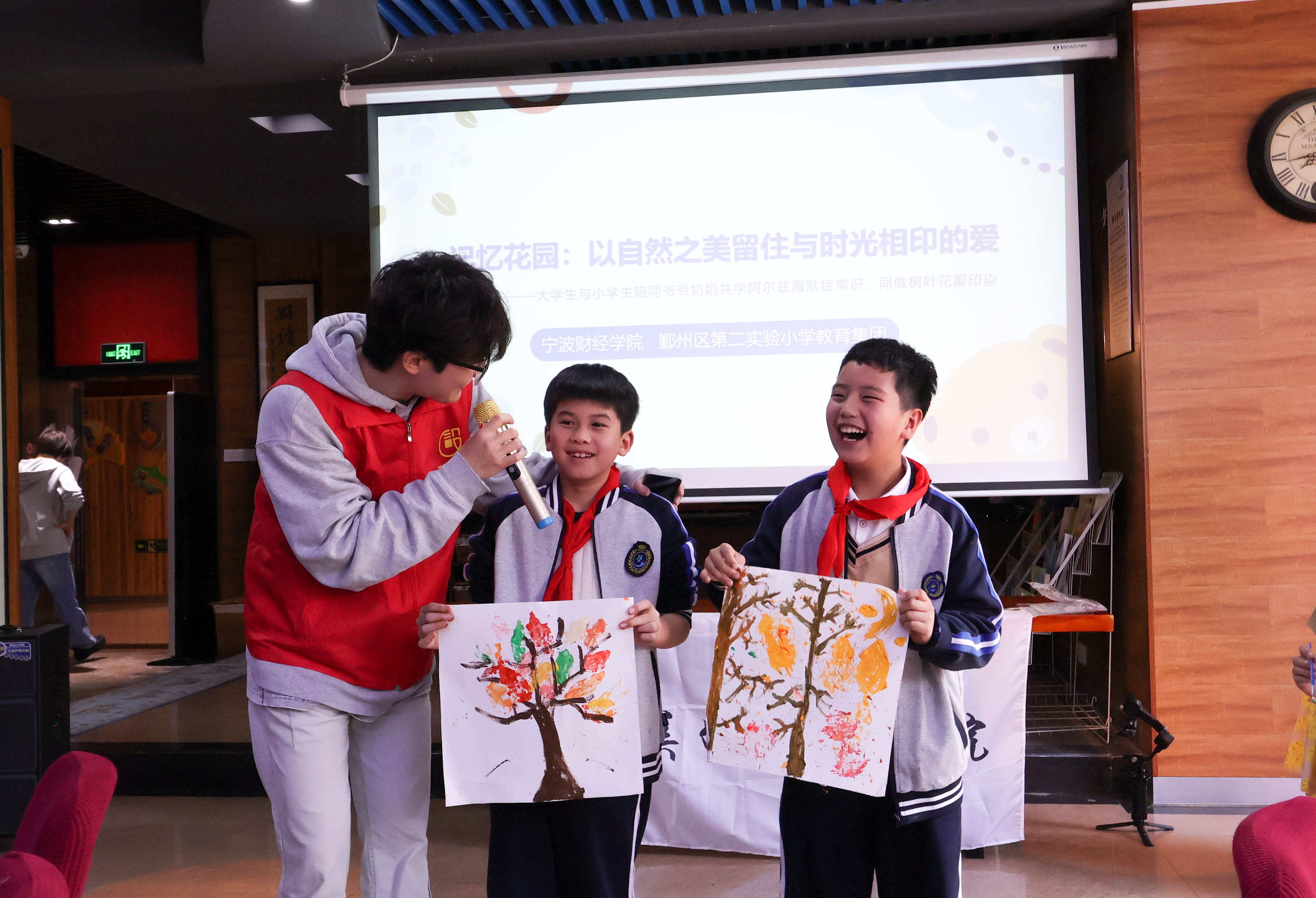“我们设计了花叶印染协同制作方案,打造出了一段‘老中青’共享的美好时光,为祖孙们架起了一座温馨的沟通桥梁。”宁波财经学院马克思主义学院副教授滕秋玲说。除了满满的“干货”讲解,宁波财经学院美好生活学院和艺术学院联合教研团队还设计了独具生命教育特色特色的树叶花瓣印染活动。