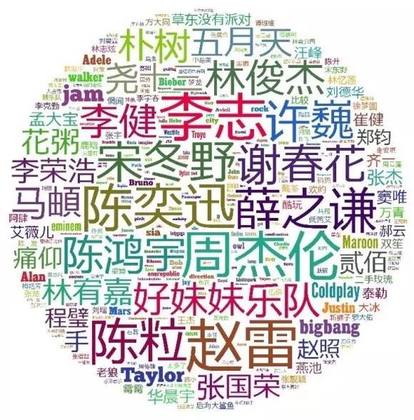 赵雷粉丝喜欢的其他歌手词云图