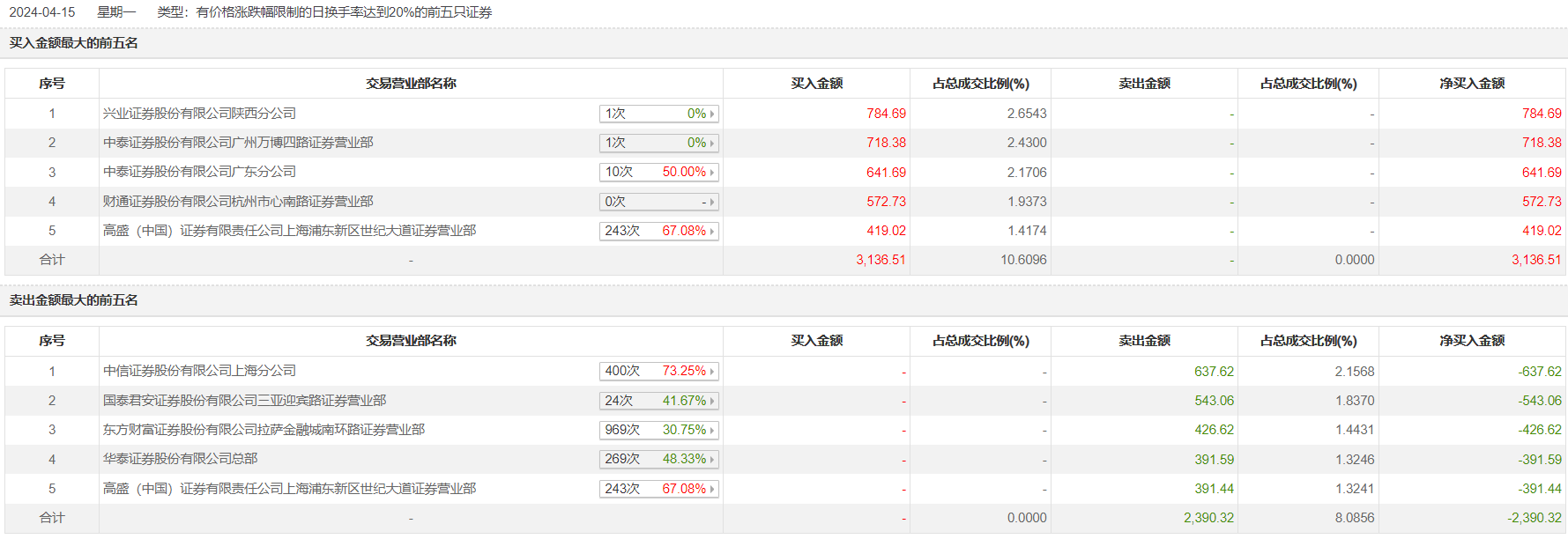 具体来看,知名游资现身龙虎榜,方新侠(兴业证券陕西分公司)、中泰证券广州万博四路证券营业部分别买入784.69万元、718.38万元;中信证券上海分公司、国泰君安证券三亚迎宾路证券营业部分别卖出637.62万元、543.06万元。